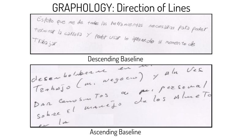 - Always relate baseline direction with other signs, such as stroke pressure, writing speed, and continuity.