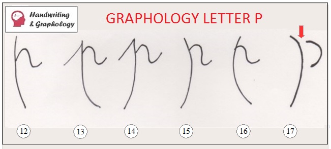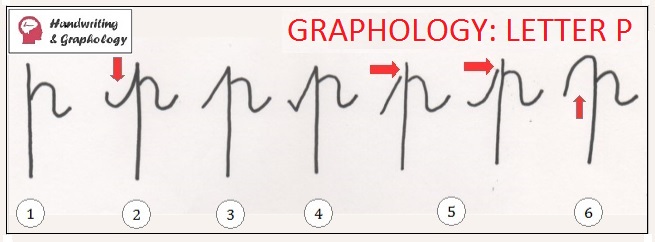 Just like the rest of letters, letter “p” has many parts that we analyze separately for then coming to a conclusion. It is expected to see harmony between the parts of each letter. When for some reason they get unbalanced, this is indicating the presence of some conflict. Letter p is composed by an initial stroke (that may be found or not), a descending stroke (edge or foot) towards the inferior area for then ascending and form the arch that will connect to the following letter.