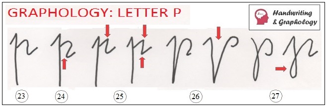 - 27. p with curled edge: Regular pace, tenacity, altruism, abnegation. If the edge is long and firm: characteristics, aptitudes and personal achievements are reinforced for work.